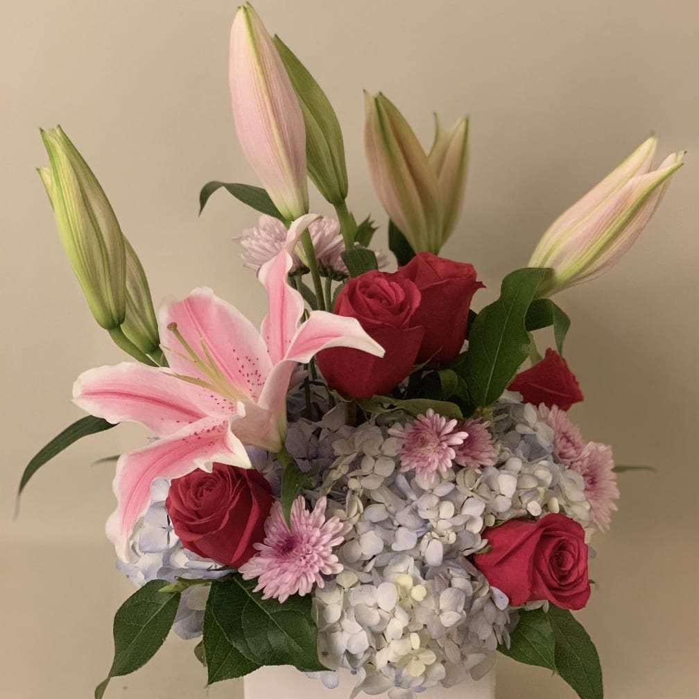 Seasonal Flowers In A Box Designer S Choice Arranged By A Florist In Palo Alto Ca Village Flower Shoppe